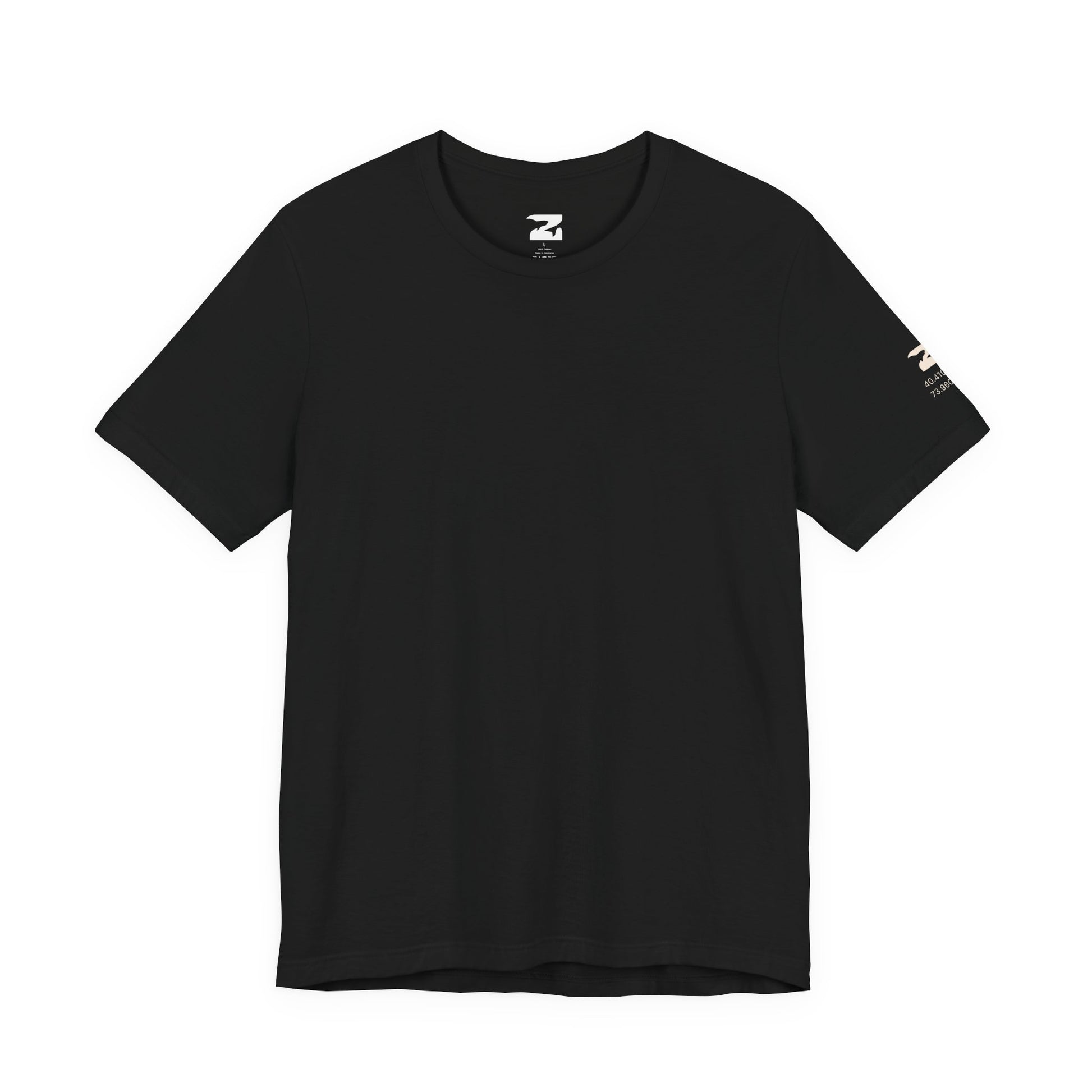 A clean black tee with a subtle left-sleeve hit -- our mark and home coordinates. Built for everyday wear, on the water or off it.